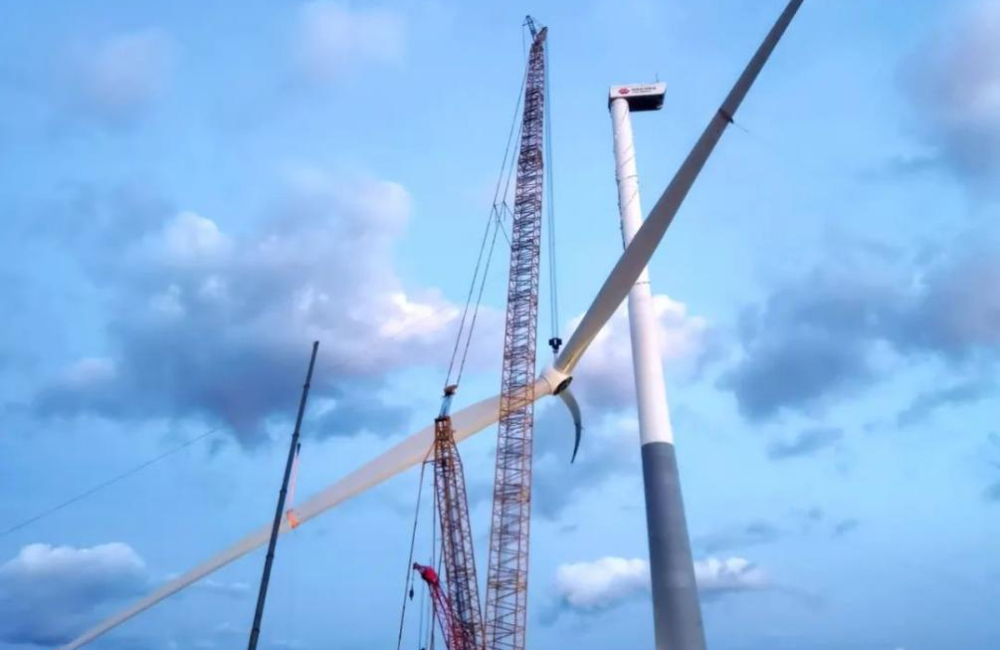 该项目是山东省首批集中式风电工程,包括31台风力发电机组,约87千米集电线路及1座升压站,总装机容量190MW。 预计年发电量超4亿千瓦时,相当于减少二氧化碳排放数十万吨,对缓解区域电力供需矛盾、促进地方绿色经济发展、推动实现“双碳”目标具有重要意义。此次吊装的风机高185米,分为塔筒、机舱、轮毂、叶片等部分。